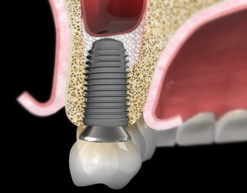 임플란트의 뿌리 역할을 하는 부분으로, 잇몸뼈(턱뼈)에 식립.