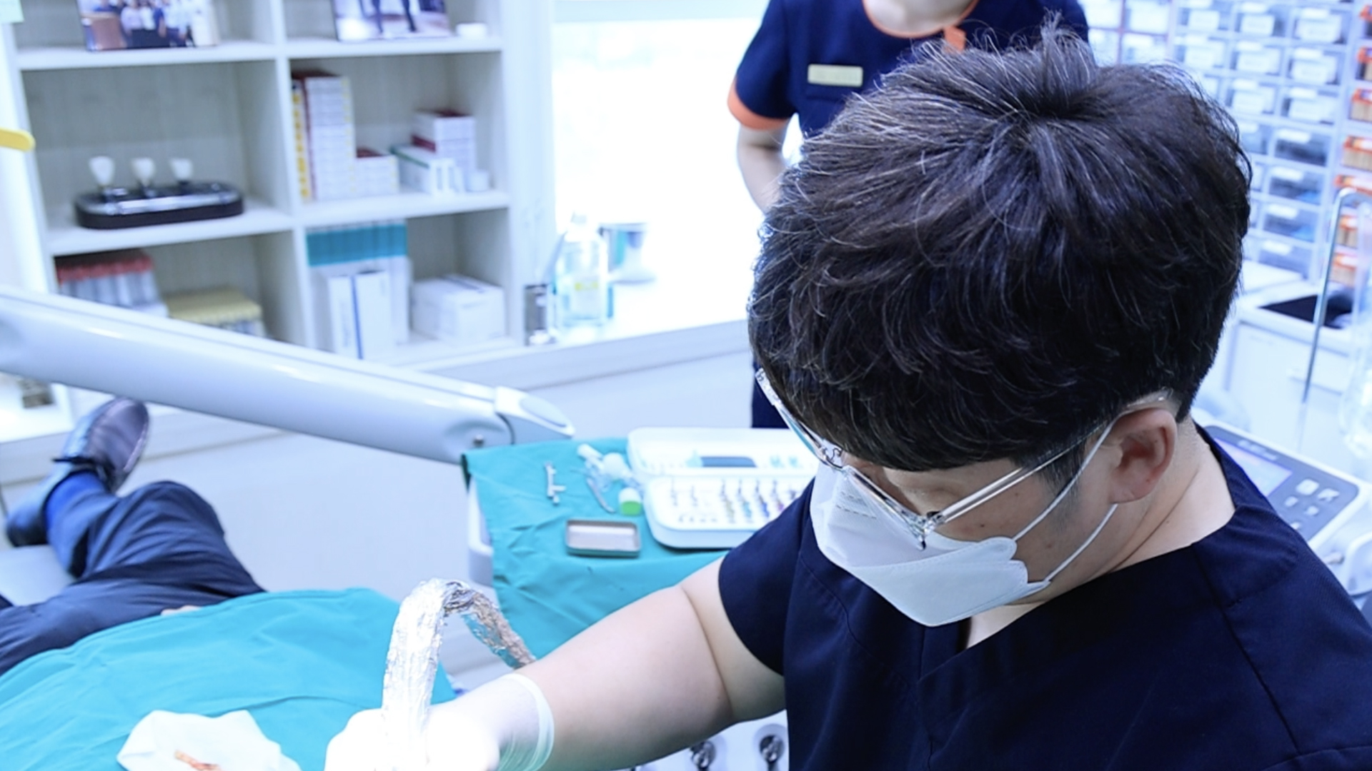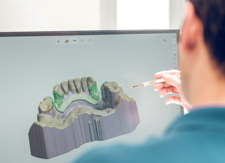임플란트 위에 장착될 인공 치아(보철물)를 제작하기 위해 구강 구조를 고성능 스캐너로 편하고 정확한 인상채득을 합니다.