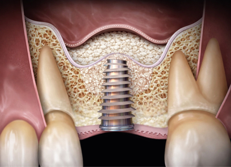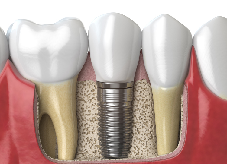 임플란트의 뿌리 역할을 하는 부분으로, 잇몸뼈(턱뼈)에 식립.